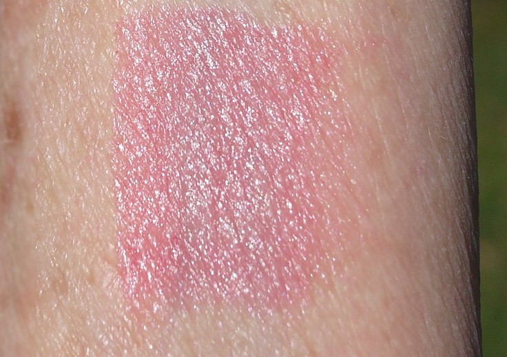 The sun did its work too well when I took this swatch photo. This shade is much darker on the lips than it appears on my arm. I would describe it as a deep purple or plum rose. It is borderline on my comfort zone. I like to wear a gloss over it to lighten the color. I realize that may seem kind of crazy, but I don't like to lead with my lips.